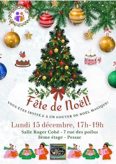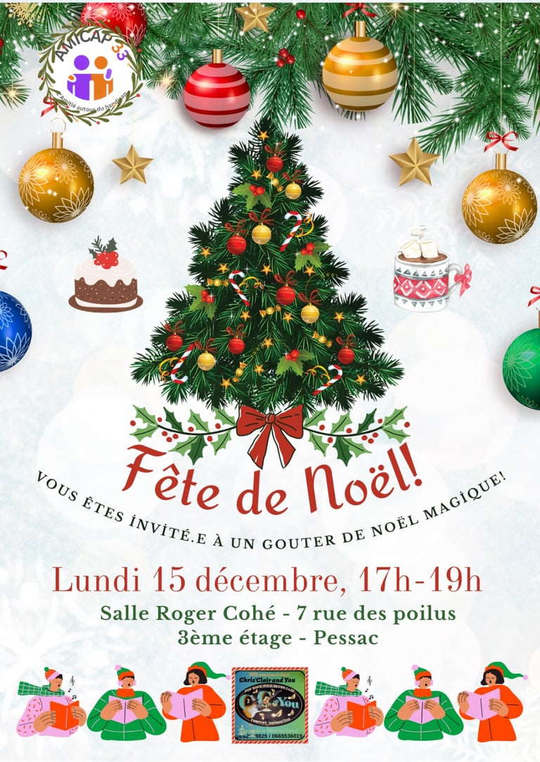 Venez partager un moment chaleureux autour de chants de Noël, pour entrer ensemble dans la magie de la fête. Lundi 15 décembre, 17h-19h, salle Roger Cohé à Pessac, 7 rue des Poilus, 3ème étage (audiophone). Invitation à partager avec vos proches, vos ami.e.s...