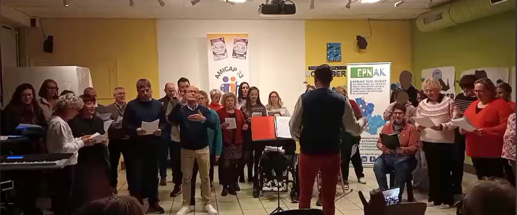 48 choristes dont 31 avec RQTH et 17 sans handicap, sur 3 ateliers choral complètement accessibles : Pessac, Mérignac et Bordeaux. Une vraie rencontre entre personnes sans et avec handicap, sans et avec emploi, autour de l'apprentissage de deux chants à plusieurs voix.