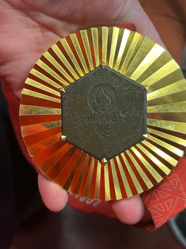 La fameuse médaille avec un morceau de la Tour Eiffel